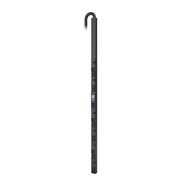APC Metered Rack PDUs distribute reliable rack power distribution via a single input with multiple output receptacles. Real-time remote monitoring and user-defined alarms help prevent potential circuit overloads that can cause accidental power loss to critical equipment. Easily access, configure, and manage this metered PDU from remote locations. A network management interface provides standards-based management via Web, SNMP, and Command Line Interface. This Metered PDU from APC provides (6) IEC 60320 C13, (12) IEC 60320 C19 outlets to supply power to rack equipment. Locking IEC receptacles enable locking power cord compatibility to reduce the probability of accidentally disconnecting cords and dropping loads. Volts, amps, real power (kW), and energy (kWh) data is provided to support energy management. An embedded log memory to reports historic metered data. Display details current, power, and voltage measurements and offers local user access. An environmental monitoring port for external temperature/humidity monitoring is available (sensor sold separately model AP9335T or AP9335TH). Easily mount this vertical PDU in racks or enclosures. It occupies zero U of valuable rack space, which allows space for more equipment in the rack. This vertical PDU does not require additional tools to mount into APC NetShelter Enclosures. Enables a quick recovery from overload events and breakers are ultra-low profile. Packaging Includes PDU, Installation guide, Rack mounting brackets, Safety guide, Serial configuration cable.