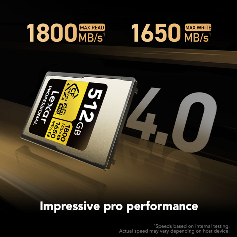 Experience the power of CFexpress 4.0 with the Lexar Professional GOLD 512GB Type A card, delivering blazing speeds up to 1800 MB/s read, 1650 MB/s write, and sustained 1400 MB/s for seamless post-production. Built tough with VPG-400 certification and 8-point protection, it’s ready for any shoot—backed by a lifetime warranty and data recovery software.