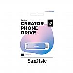 For creators with multi-device workflows, the SanDisk Creator Phone Drive, part of the SanDisk Creator Series, is your compact companion for reliable, high-speed storage and enhanced creativity. Transition effortlessly between smartphones, tablets, and PCs with both USB Type-CTM and Lightning connectors. With up to 128GB of storage, it’s designed to support your creative workflow with uncompromising quality. Whether you're managing high-resolution photos, numerous video files, or important documents, this drive helps to ensure you don’t run out of space. Plus, enjoy a three-month Adobe Lightroom membership included with purchase to elevate your creativity, allowing you to edit and organize your photos with professional-grade tools.