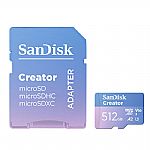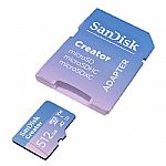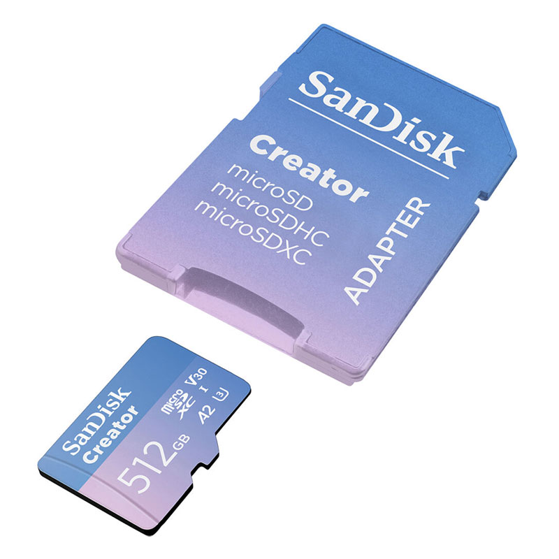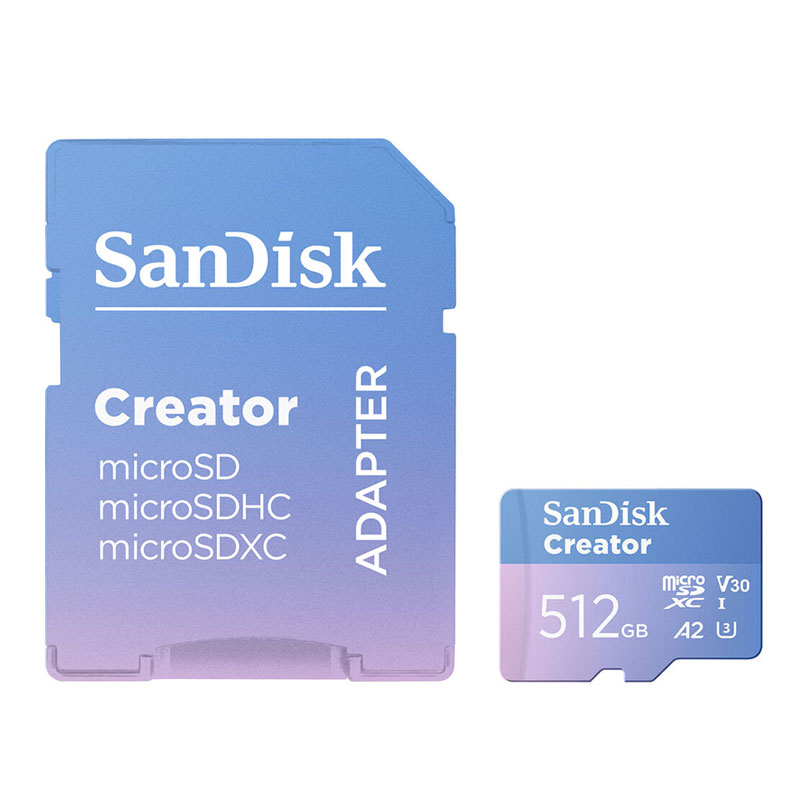 Bring your vision to life with the Creator Series UHS-I microSDXC Memory Card from SanDisk, which lets you capture 5.3K (5312 x 2988), DCI 4K (4096 x 2160), and Full HD video, plus raw photos and continuous shutter bursts. Designed for smartphones, action cameras, drones, and DSLRs or mirrorless cameras, this card has a storage capacity of 128GB and takes advantage of the UHS-I bus to support read speeds of up to 190 MB/s and write speeds of up to 90 MB/s. Thanks to the V30 Video Speed Class rating, write speeds won't drop below 30 MB/s. Also supported is the A2 spec for improved performance on Android devices.